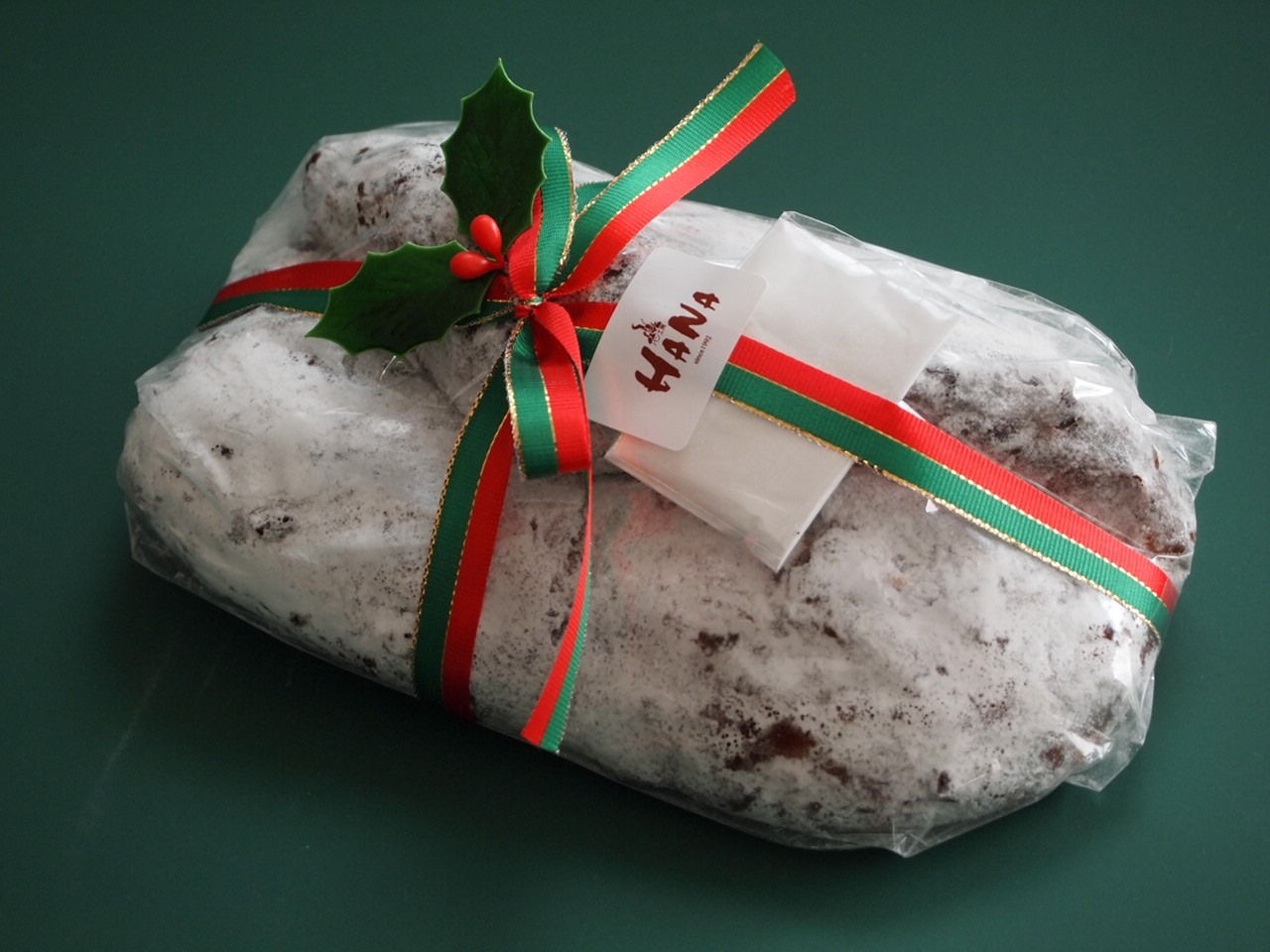 ドイツでは、クリスマスを待つアドベントの間、少しずつスライスして食べる習慣があるそうな。フルーツの風味などが日ごとにパンへ移っていく為、今日よりも明日、明日よりも明後日、とクリスマス当日が段々待ち遠しくなるのだそうです。