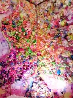 以前、あのヴィトンとのコラボレーションにより、黒地あるいは白地にモノグラムをカラフルに配した「モノグラム・マルチカラー」を発表した日本人デザイナー村上隆さんのところでプロジェクトアシスタントをしていた友人が、今回は増田セバスチャンのところで、NYでのデビュー展のお手伝いをしていらっしゃるとのことで、9日にギャラリーでのパフォーマンスをのぞきに行ってきました。