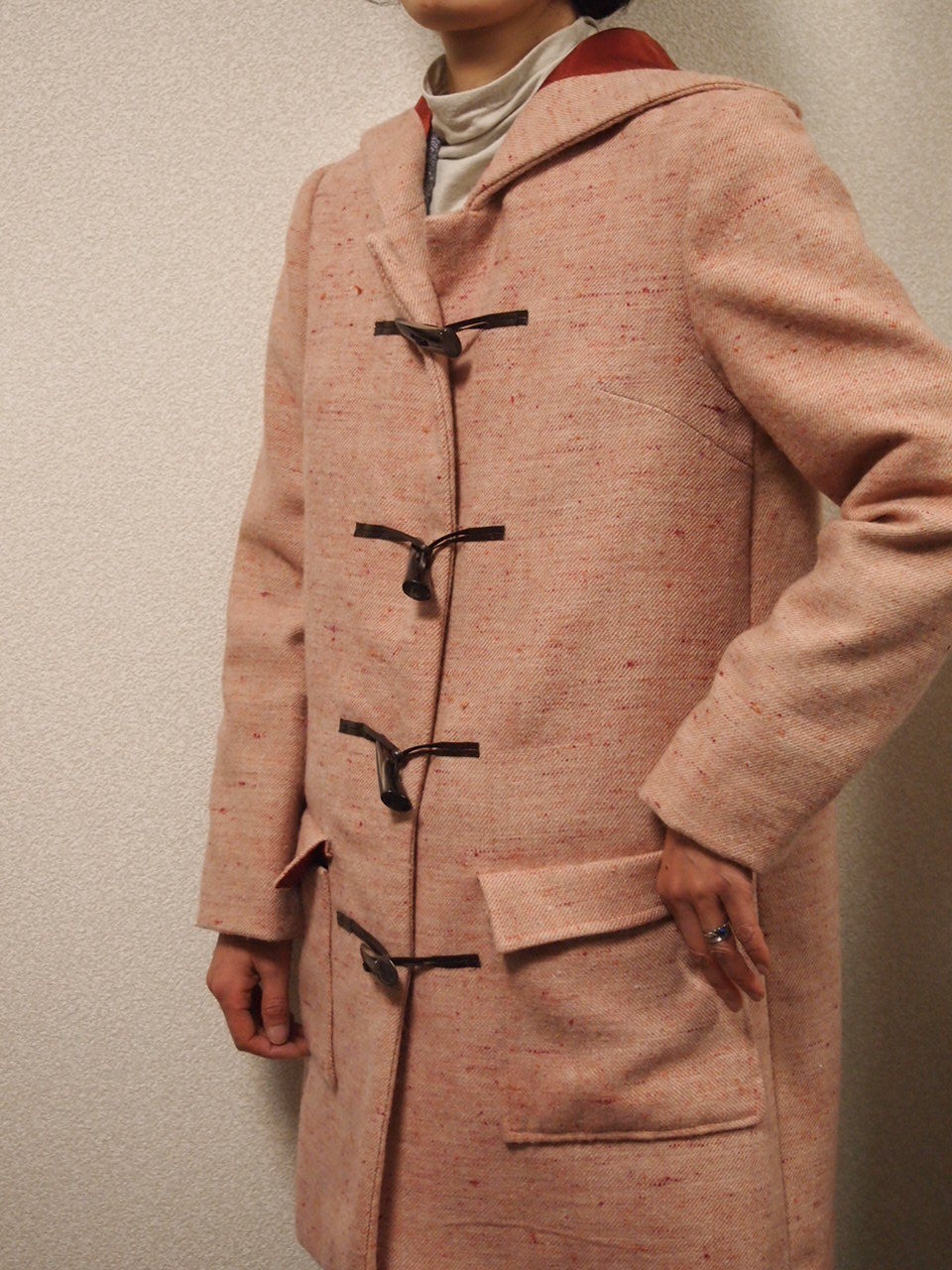 右は、ご自分で織られたお生地で、ダッフルコートを製作されました。
