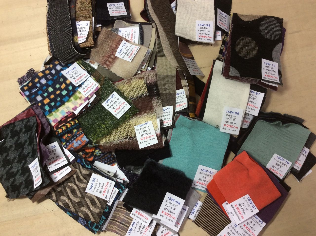 お教室に、冬の生地見本が届きました。