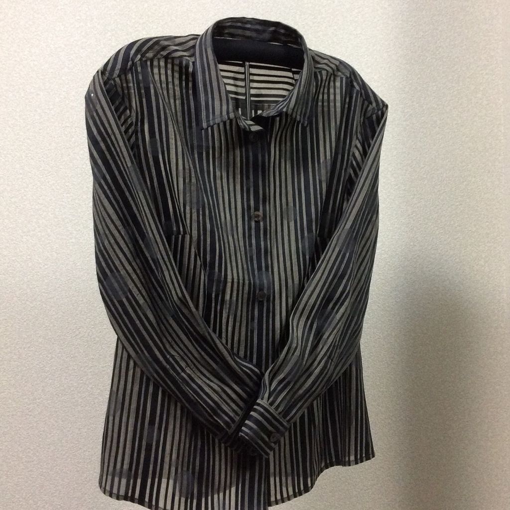 シースルーのストライプに大小のドットが織り込まれている地味なお生地でした。