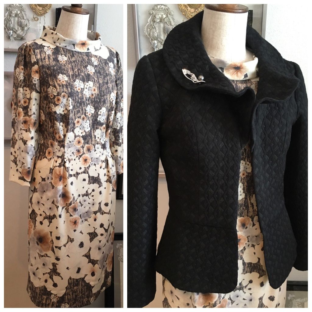 ロールカラーワンピースとフリルカラーのジャケットの完成写真を送ってくださいました。