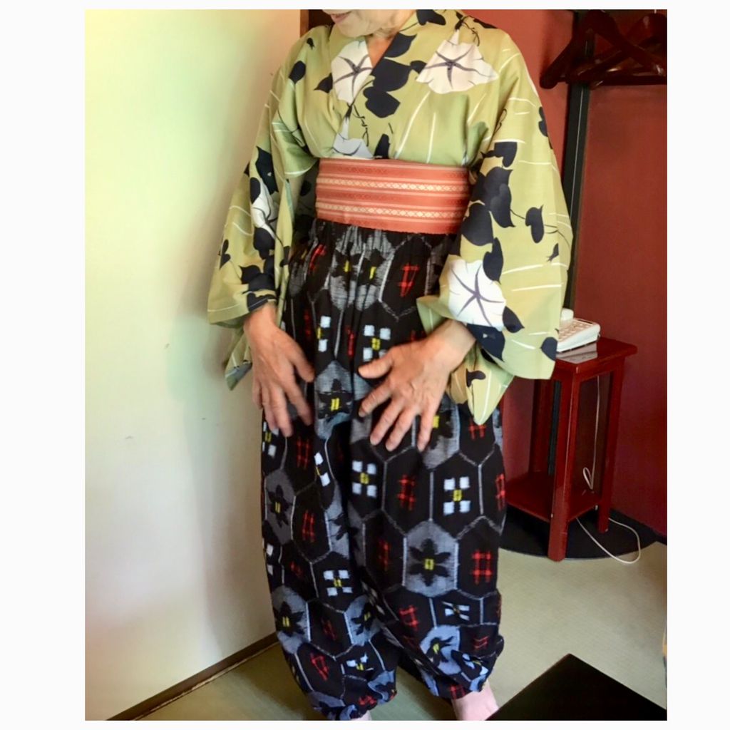お着物をお召しになる友人から、雨の日とか自転車(⁈)に乗る時のために、モンペを作って欲しいと頼まれたそうな・・・