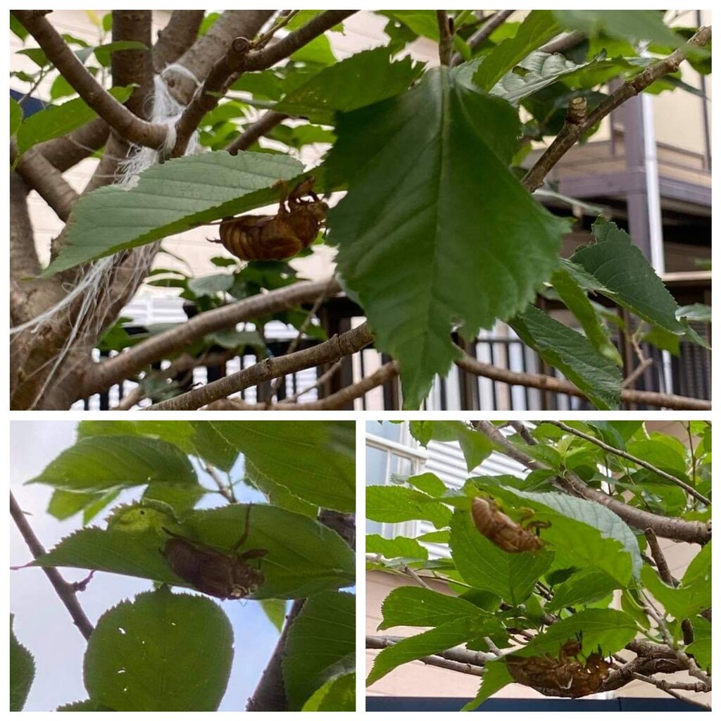 先月剪定していただいた桜桃の木、スッキリしたのですが見通しが良くなったせいなのかセミの抜け殻をたくさん発見! そういえば以前、車のタイヤに抜け殻が付いていたことがありましたっけ・・・
