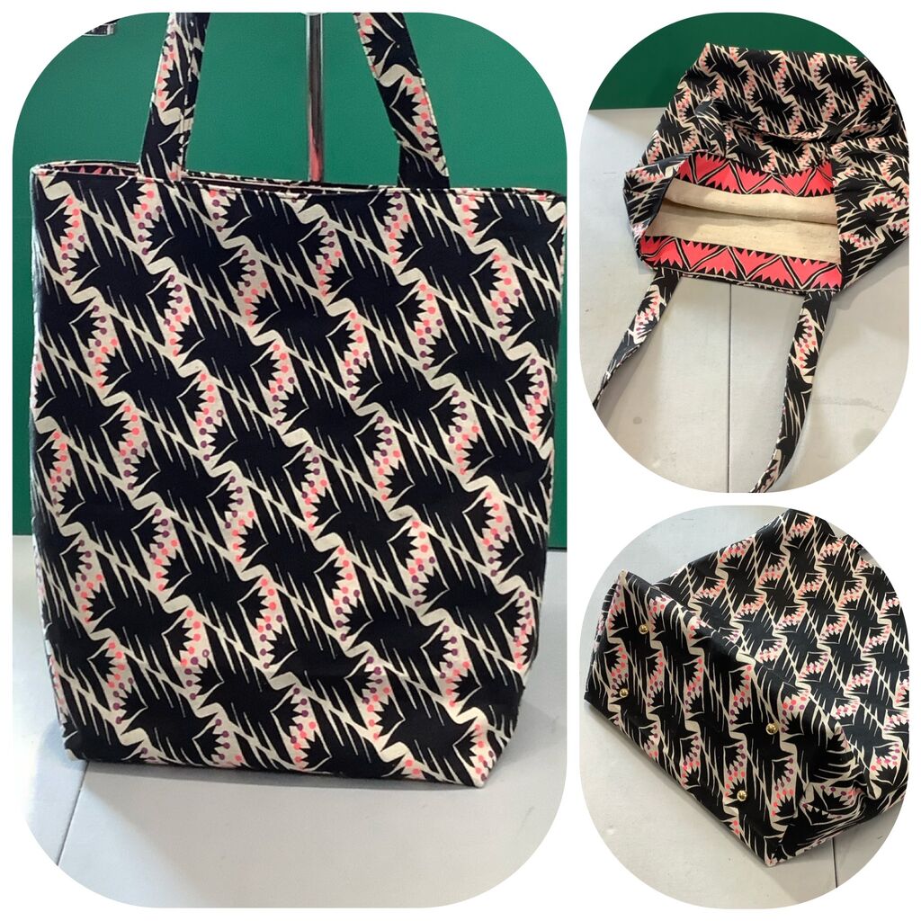 キャンバスのプリント地で素敵なバッグです。